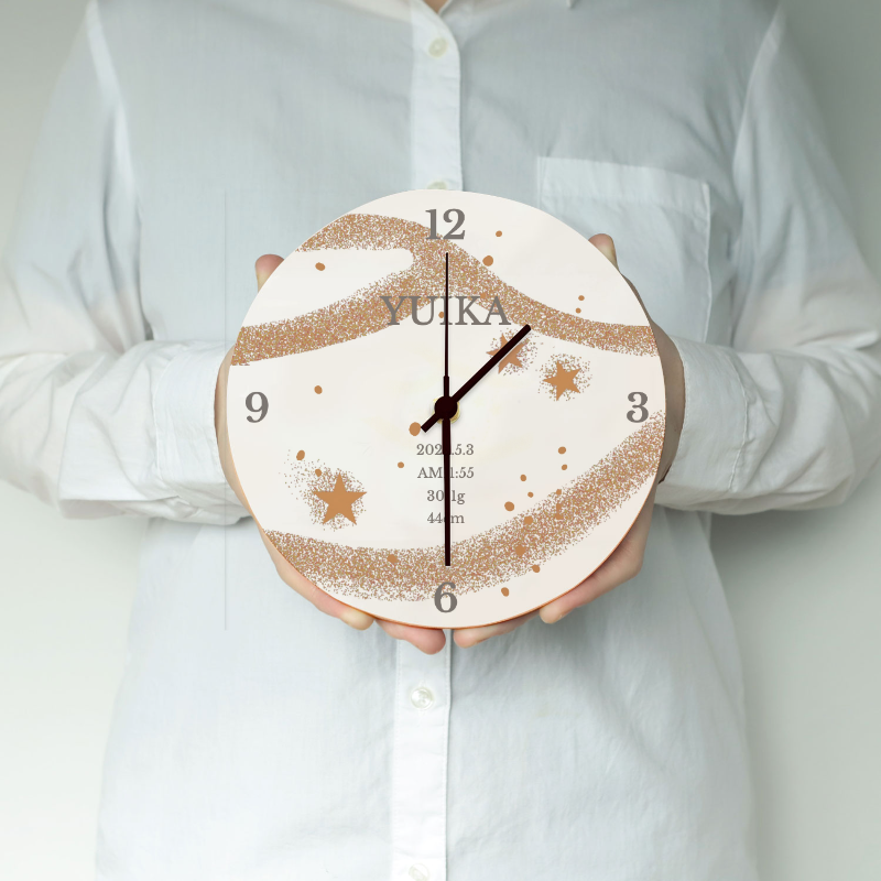 名入れ革ギフト 革の命名書時計17cm:出産祝い・内祝い 「星空」ホワイト
